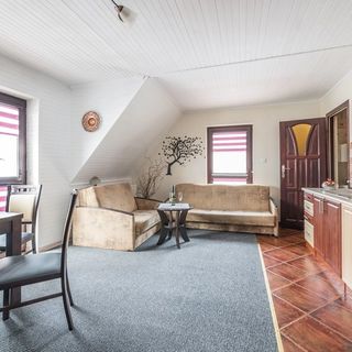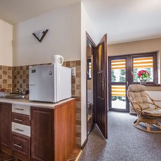 Niestety po dokładnym obejrzeniu pokoju musieliśmy szukać innego noclegu mimo zapłaconej zaliczki Opinia dotyczy pomarańczowego pokoju-bardzo ciemny duszny z niewygodnym łóżkiem i atrapą balkonu.Zdjęcia nie oddają stanu faktycznego. W niższej cenie ,z pięknym widokiem na góry oraz dużo lepsze warunki znaleźliśmy nocleg w Kościelisku.