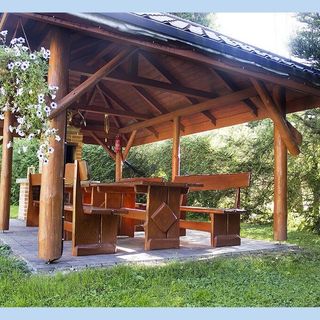 Nasz duży, zielony ogród posiada trampolinę dla dzieci, piaskownicę, mini zjeżdżalnię, zjeżdżalnię ogrodową z wieżą, huśtawki dla dzieci i dorosłych oraz zamykany parking. Posesja jest ogrodzona i zapewnia spokojny i bezpieczny wypoczynek. W ogrodzie znajduje się drewniana altana z murowanym kominkiem, gdzie można rozpalić grilla i miło spędzić czas.