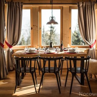 Każdy domek o powierzchni 100–110 m² składa się z dwóch poziomów. Wnętrza łączą nowoczesność z regionalnym stylem: obszerna przestrzeń, wygodne sypialnie oraz w pełni wyposażony aneks kuchenny sprawiają, że poczujesz się tu jak u siebie. Z tarasu domku roztacza się zachwycający widok na Tatry.
