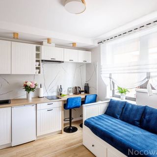 Studio Premium składa się z jednego pokoju z aneksem kuchennym, garderobą oraz łazienką. W pokoju znajduje się rozkładane łóżko (z 2 materacami 80x200), komoda RTV z telewizorem oraz w pełni wyposażony aneks kuchenny ( blat z hokerami, płyta, lodówka, okap, czajnik, zastawa stołowa, kieliszki akcesoria kuchenne). W garderobie mieści się szafa, lustro oraz wieszak na odzież wierzchnią. Dodatkowe wyposażenie obejmuje: ręczniki, deskę do prasowania oraz suszarkę na bieliznę. Studio posiada dostęp do ogródka z mini placem zabaw dla dzieci (piaskownica, domek ze ślizgiem, trampolina, miejsce do grillowania z altanką). Miejsce postojowe po wcześniejszym ustaleniu.