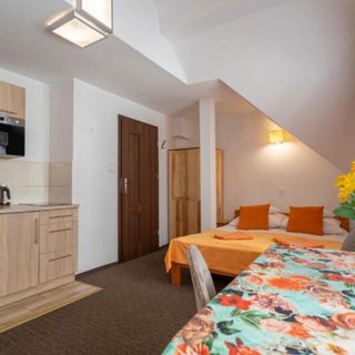 Ponadto oferujemy pokoje z aneksem kuchennym (lodówka, czajnik, kuchenka mikrofalowa, płyta indukcyjna oraz pełne wyposażenie)