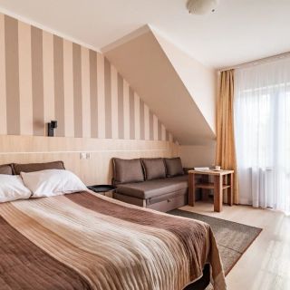 Oferta noclegowa obiektu obejmuje pokoje 2-, 3- i 4-osobowe oraz 4-osobowe apartamenty. Każdy z nich dysponuje prywatną łazienką oraz balkonem z widokiem na las. Standardowe wyposażenie obejmuje telewizor, lodówkę, czajnik elektryczny oraz podstawowe naczynia.
