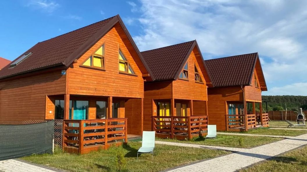 Oferujemy 5 domków drewnianych całorocznych o wysokim standardzie. W każdym standardowo 6 lub 10 miejsc noclegowych z możliwością dodatkowych dwóch miejsc po wcześniejszym ustaleniu.