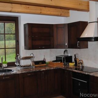 W pełni wyposażona kuchnia (zmywarka, lodówka, zamrażarka, ekspres do kawy, naczynia dla 15 osób).