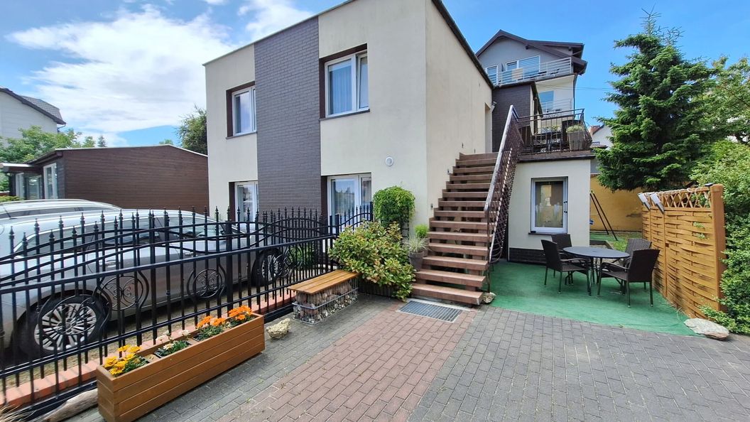 Nasz dom jest to budynek typowo wczasowy. Posiada dwie kondygnacje na których znajduje się siedem pokoi z łazienkami. Przed budynkiem znajduje się ogrodzony parking dla naszych gości. Kwatera położona jest w dzielnicy wczasowej Cetniewo około 800m od morza. Okolica jest cicha i spokojna (do głównej ulicy 300 m). Do centrum rozrywki sezonowej czyli ulic Morskiej i Sportowej dochodzimy spacerkiem w niecałe 10 min.