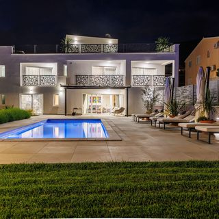 We Stayed at this villa August 2024 for 7 nights, Family of 8 (6 Adults and 2 Children) We were greeted by the owners of the villa who were super friendly and accommodating. The Villa was absolutely stunning, better than could even imagine from the pictures, beautiful interior & exterior, great sized pool & outdoor spaces. All well kept tidy & clean with everything we needed, towels, beach towels etc. well equipped kitchen. plenty to do just at the villa alone with its rooftop Jacuzzi, downstairs Gym/ Cinema room, Outdoor Pool & Outdoor BBQ/Grill. Excellent Airconditioning kept us lovely and cool inside the villa, Good WiFi. Comfortable beds. spacious bedrooms all with own bathrooms. We walked to a few nearby Bars/ Restaurants: The Olive Garden, Beach Bar Lungomare, Gooshter Beach Club, Port 74, Restaurant Jure. which all served lovely food & provided great service. Also a small shop within walking distance to stock up on your food and drinks. We went into Split (Old Town Riva) a few times via taxi (Uber/ Bolt) which was a 20min ride reasonably priced. Also full of nice eating places bars and shops. We explored the Diocletian Palace & rubbed the big toe of there iconic statue ''Grgur Ninski'' for good luck. We also went on a lovely boat trip departing from Split (Blue lagoon & 3 Islands Speedboat Tour) which we booked through the ''GetYourGuide'' App. this was one of the highlights of our trip. and we took a drive to Krka National park to see the beautiful waterfalls. I would definitely recommend to anyone looking to stay near split. Thank you so much we thoroughly enjoyed our summer holiday in Croatia The weather was amazing & the Villa was Top notch!!