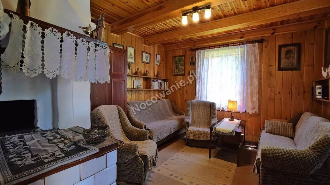 Ponad 100-letnia wiejska chałupa ma piec chlebowy, kuchnię gazową i łazienkę z termą, telewizor i radio oraz taras przy studni w ogrodzie pełnym wiejskich kwiatów.