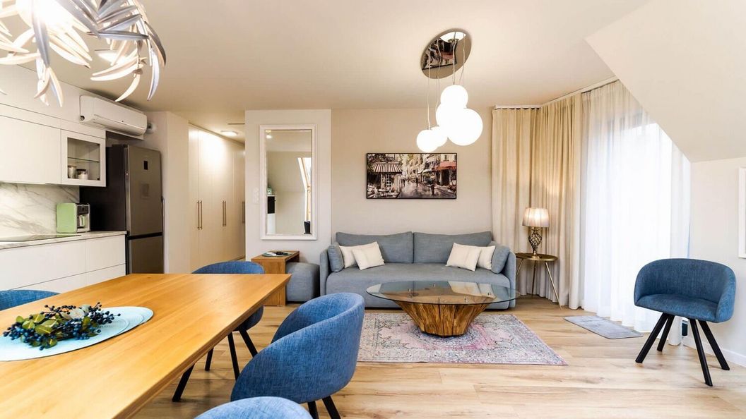 VacationClub™ – apartament superior Ogrody Pieniawskie Apartament 44 mieści się na 3 piętrze i składa się z dwóch sypialni, salonu z aneksem kuchennym, łazienką oraz osobno toaletą. Wykończony w wysokim standardzie w bardzo przyjemnych barwach oraz z pięknymi widokami dookoła. Z pewnością spodoba się osobom które lubią nowoczesne wnętrza i oczekują wypoczynku na wysokim poziomie. Posiada dwa duże balkony z widokiem na góry oraz panoramę miasta. Dla wygody naszych Gości wyposażony jest w pojemną szafę w zabudowie. Aneks kuchenny jest bardzo dobrze wyposażony posiada: piekarnik, zmywarkę, mikrofalę, płytę grzewczą, czajnik oraz przybory kuchenne. Dla naszych Gości do dyspozycji jest również ekspres do kawy. Z salonu oraz sypialnii można wyjść bezpośrednio na balkon w widokiem na park i słynną Wielką Pieniawę. Na naszych Gości czekają również zestawy wypoczynkowe oraz leżaki, które zapewnią komfort na świeżym powietrzu. Dodatkowo apartament wyposażony jest w klimatyzację w każdym pomieszczeniu oraz posiada prywatne miejsce postojowe w garażu podziemnym nr 20.