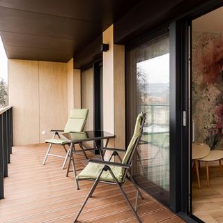 Na najwyższym poziomie apartamentowca znajduje się ogólnodostępny taras z widokiem na miasto i góry.
