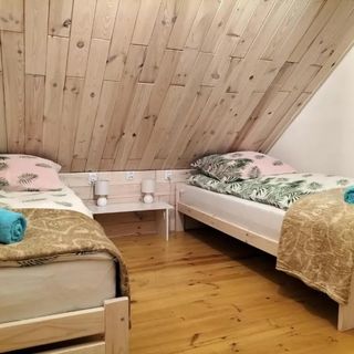 W jednej sypialni znajduje się jedno podwójne łóżko z dużą szafą, na życzenie gości możliwość dostawienia łóżeczka dziecięcego. W drugiej sypialni znajdują się trzy pojedyncze łóżka i komoda.