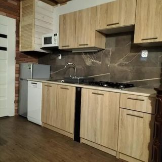 Salon połączony jest z w pełni wyposażoną kuchnią ( kuchenka gazowa, lodówka, zmywarka, mikrofala).