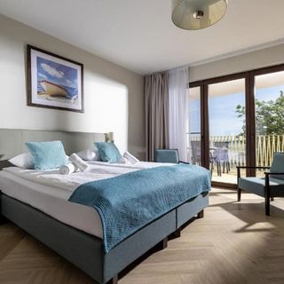 Oferta noclegowa hotelu obejmuje pokoje 2-osobowe w standardzie Standard, Superior oraz Deluxe, a także apartamenty przeznaczone dla 3 lub 4 osób. Część apartamentów składa się z dwóch pomieszczeń sypialnianych, co jest wygodnym rozwiązaniem dla rodzin lub grup. Wybrane pokoje i apartamenty dysponują prywatnym balkonem lub tarasem, a z okien części z nich roztacza się widok na Zatokę Pucką.