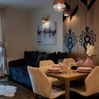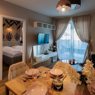 VacationClub™ Apartamenty Zakopiańskie Apartament 44 to 2-pokojowy apartament znajdujący się na parterze nowoczesnego kompleksu apartamentowego. Apartament posiada przestronny salon z sofą, aneks kuchenny i część jadalnianą, sypialnię z łóżkiem małżeńskim. Usytuowany w spokojnej dzielnicy Zakopanego nieopodal Bachledzkiego Wierchu oraz ośrodku narciarsko-rekreacyjnego Harenda (2,5 km). Miłośnicy długich wędrówek górskich oraz sportów zimowych z pewnością odnajdą w naszym obiekcie idealne miejsce do wypoczynku i regeneracji. Nasza strefa rekreacji, znajdująca się w centralnej części budynku, została stworzona z myślą o Gościach i oferuje szeroki wachlarz udogodnień. W skład tej strefy wchodzą: sauna sucha i mokra, jacuzzi, miejsce z solną ścianą oraz wygodne leżaki do relaksu. Dla tych, którzy preferują aktywność fizyczną, dostępna jest także siłownia. Dbając o naszych najmłodszych Gości, przygotowaliśmy kompleks rozrywkowy, który obejmuje dobrze wyposażoną salę zabaw oraz brodzik wodny, umiejscowiony obok jacuzzi. Dla większości naszych apartamentów roztacza się malowniczy widok na Tatry, w tym na szczyty, takie jak Giewont, Gubałówka i Harenda.