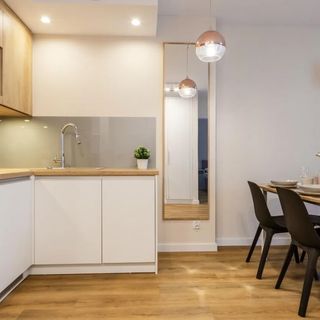 W apartamencie znajduje się aneks kuchenny przystosowany do zaspokajania codziennych potrzeb. Do dyspozycji Gości są sprzęty AGD m.in. lodówka, płyta elektryczna z okapem oraz komplet naczyń, sztućce, akcesoria kuchenne, szklanki i kieliszki do wina. Wszystko, co potrzebne by samodzielnie przygotować posiłki i cieszyć się wspólnymi chwilami z bliskimi.