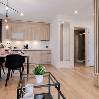 W apartamencie znajduje się aneks kuchenny przystosowany do zaspokajania codziennych potrzeb. Do dyspozycji Gości są sprzęty AGD m.in. lodówka, płyta elektryczna z okapem oraz komplet naczyń, sztućce, akcesoria kuchenne, szklanki i kieliszki do wina. Wszystko, co potrzebne by samodzielnie przygotować posiłki i cieszyć się wspólnymi chwilami z bliskimi.