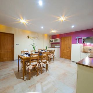 Właścicielka przemiła i bardzo pomocna, pierwszego dnia wszystko wyjaśnia. Ogród pięknie zadbany, ładne otoczenie, z dala od zgiełku.Trochę daleko do centrum, ale zależy co kto lubi ;).Pensjonat godny polecenia zarówno rodzinom z dziecmi jak i seniorom.