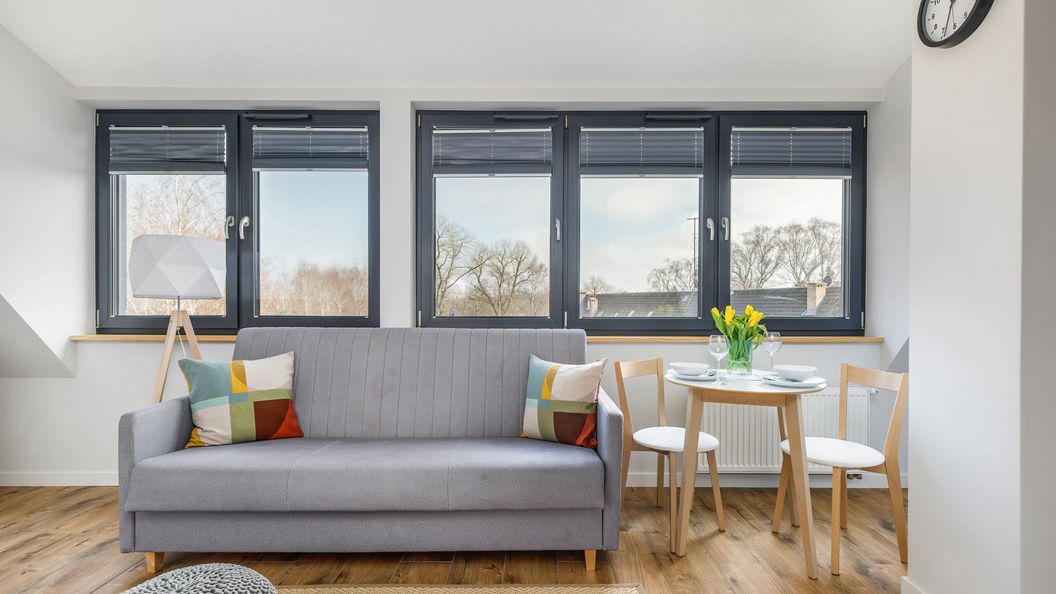 To urokliwe studio zlokalizowane na 4. piętrze oferuje możliwość zakwaterowania dwóch osób – to idealna propozycja dla par! Funkcjonalna przestrzeń składa się z przytulnego salonu z rozkładaną sofą i aneksem kuchennym oraz łazienki z prysznicem. Mieszkanie charakteryzuje przyjemny wystrój w odcieniach bieli i szarości oraz dekoracje w geometryczne wzory. Na dobrą atmosferę tego miejsca wpływ ma również fakt, że studio wypełnione jest naturalnym światłem dziennym dzięki solidnym oknom. Wygodna kanapa i telewizor w części dziennej to doskonałe miejsce na odpoczynek i relaks po długim dniu. Aneks kuchenny wyposażony jest w wysokiej jakości sprzęt AGD, który pozwala na przygotowanie ulubionych posiłków. W dodatku dostępny w mieszkaniu ekspres na kapsułki daje możliwość delektowania się filiżanką pysznej kawy z samego rana. Komfort pobytu zapewniają również udogodnienia takie jak TV z płaskim ekranem, Internet Wi-Fi oraz zestaw kosmetyków, ręczniki i pościel.