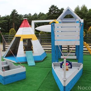 - Indiańskie tipi ze zjeżdżalnią oraz dwa statki pirackie do pobudzania dziecięcej kreatywności