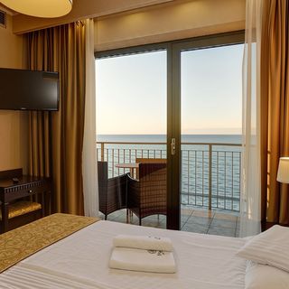 Hotel oferuje komfortowe pokoje i apartamenty w różnych standardach – od pokoi Economy po przestronne apartamenty Superior z widokiem na Bałtyk. Wszystkie wyposażone są w klimatyzację, minibar, sejf, telewizor i bezpłatne Wi-Fi.