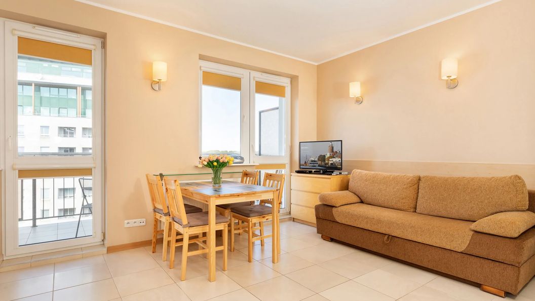 Ten komfortowy apartament znajduje się na 7. piętrze, na parterze w mieszkaniu dwupoziomowym i ma możliwość zakwaterowania 4 osób.