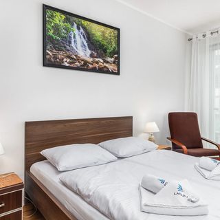 Wygodny wakacyjny apartament z balkonem położony jest w nowoczesnym, wysokiej klasy apartamentowcu Casa Marina, 450 m od plaży. Kompleks posiada windę, podziemny parking oraz patio ze sprzętem do zabawy dla dzieci. To bardzo lubiana lokalizacja ze względu na bliskość nowej nadmorskiej Promenady - zachwycającego, spacerowego bulwaru pełnego nastrojowych restauracji, kawiarni i lokalnych sklepów - oraz pięknej, piaszczystej plaży idealnej na całodzienny relaks. Kilkuminutowy spacer w przeciwnym kierunku prowadzi do zieleni zabytkowego Parku Zdrojowego, którego rozległe tereny z alejkami, ścieżkami rowerowymi i placami zabaw są popularnym miejscem wśród rodzin. Okoliczne wypożyczalnie rowerów to świetny, przyjazny dla środowiska - i ciekawy - sposób na zwiedzanie reszty miasta.