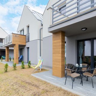 Estetycznie zaprojektowany apartament usytuowany w nadmorskiej scenerii w miejscowości Jastrzębia Góra przy ulicy Wiatrakowej. Apartament jest częścią nowoczesnej inwestycji o niebanalnej architekturze, oddalonej około 15 minut od piaszczystej plaży. Lokalizacja apartamentu to idealne miejsce na wycieczki rowerowe, piesze wędrówki, dzięki obecności licznych szlaków turystycznych i rowerowych zlokalizowanych na terenie Nadmorskiego Parku Krajobrazowego. Jastrzębia Góra zachęca odwiedzających swoimi atrakcjami, Latarnia Morska Rozewie i Gwiazda Północy oddalone około 1,5 km od apartamentu. Posesja domu jest ogrodzona, a przed bramą goście mogą swobodnie zaparkować auto, w wyznaczonym miejscu.