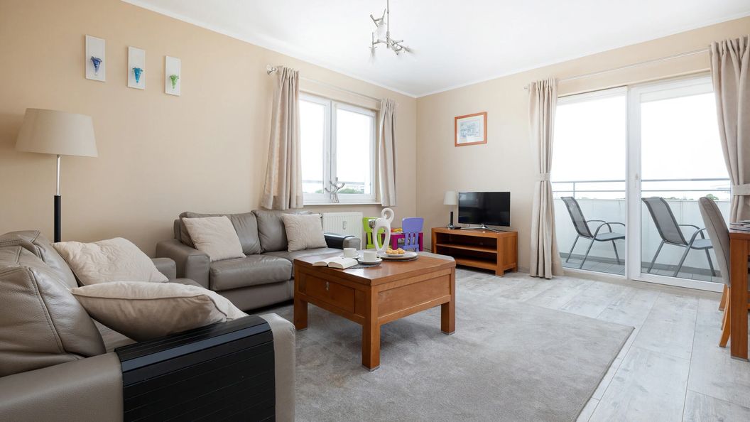 Ten komfortowy apartament znajduje się na 8. piętrze i ma możliwość zakwaterowania 6 osób - świetny wybór dla rodzin!