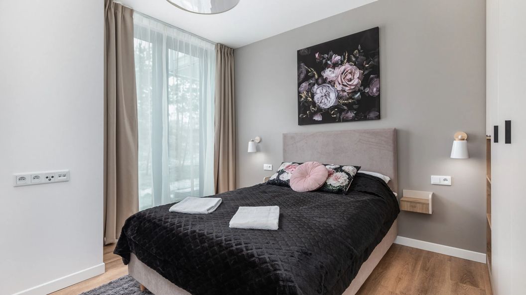 Nowoczesny, klimatyzowany apartament znajduje się na parterze i może ugościć aż 5 osób - idealny na wakacyjny wypad z rodziną lub przyjaciółmi! Przestrzeń apartamentu obejmuje pokój dzienny z aneksem kuchennym, dwie sypialnie, przestronny taras oraz łazienkę z prysznicem. Apartament wyróżnia się nowoczesnym designem, estetyką i funkcjonalnością. Pokoje zapewniają elastyczny układ spania, w jednym z nich znajduje się bowiem łóżko małżeńskie, a w drugim łóżko pojedyncze. Część dzienna z rozkładaną sofą i telewizorem to doskonałe miejsce do odpoczynku i relaksu, dodatkowo w pełni wyposażony aneks kuchenny pozwala na przygotowanie ulubionych posiłków. Multimedia obejmują bezpłatne łącze internetowe Wi-Fi oraz telewizor z płaskim ekranem i dostępem do kanałów telewizji satelitarnej i naziemnej. System klimatyzacji gwarantuje optymalną temperaturę w każdą pogodę i porę roku. Na dobry początek każdego pobytu zapewniony jest bezpłatny zestaw kosmetyków, ręczniki i pościel. Goście podróżujący samochodem mogą zaparkować na prywatnym miejscu postojowym w garażu podziemnym.