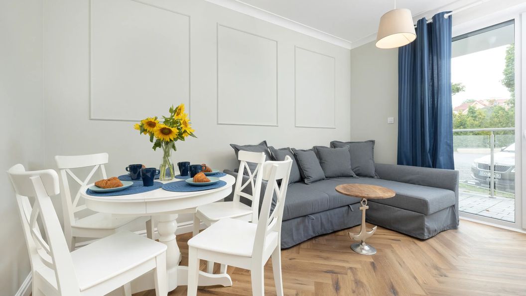 Ten komfortowy apartament dla 4 osób to doskonały wybór na wakacje nad morzem! Apartament składa się z salonu z aneksem kuchennym, sypialni oraz łazienki z prysznicem. W apartamencie znajduje się wszystko, co potrzebne do relaksu wakacyjnego i wypoczynku w domowej atmosferze. W pełni wyposażona kuchnia z ekspresem do kawy, zmywarką i naczyniami kuchennymi pozwala gościom na przygotowanie domowych posiłków. Goście mogą cieszyć się śniadaniem lub kolacją na prywatnym balkonie z meblami ogrodowymi. Aby ułatwić rozpoczęcie każdego pobytu, na gości czeka bezpłatny zestaw kosmetyków, ręczniki i pościel.
