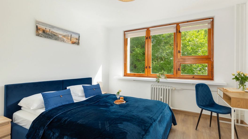 Ten jasny i przestronny apartament położony jest na 2. piętrze budynku przy ul. Katedralnej w Kołobrzegu, popularnej miejscowości uzdrowiskowej nad Bałtykiem. Lokalizacja w samym sercu Kołobrzegu umożliwia dogodne korzystanie ze wszelkich udogodnień i atrakcji jakie to piękne, nadmorskie miasto ma do zaoferowania. Budynek otaczają zielone skwery, gdzie można udać się z dziećmi na plac zabaw lub po prostu przysiąść na ławce i zrelaksować się chłonąc przyjemny klimat okolicy. Obiekt mieści się przy samej Starówce, dzięki czemu kawiarnie ze smaczną kawą, oraz znakomite restauracje, jak i drink bary są w odległości zaledwie kilku kroków. W bliskim sąsiedztwie znajdziemy również Muzeum Miasta Kołobrzeg (50 m), Pomnik Tysiąclecia (130 m), czy Ratusz w Kołobrzegu (290 m). Odległość apartamentu od plaży centralnej wynosi zaledwie 1.6 km - zaledwie dwudziestominutowy spacer wystarczy, by odprężyć się na złotym piasku w towarzystwie szumu fal Bałtyku. Miejsce, które warto odwiedzić z dziećmi to również Ukryta Kraina w Kołobrzegu (1.6 km), czy Muzeum Figur Woskowych (1.4 km). Mieszkanie zlokalizowane jest tylko 8 minut spacerem od stacji kolejowej PKP Kołobrzeg, co z pewnością będzie dużym atutem dla Gości podróżujących pociągiem.