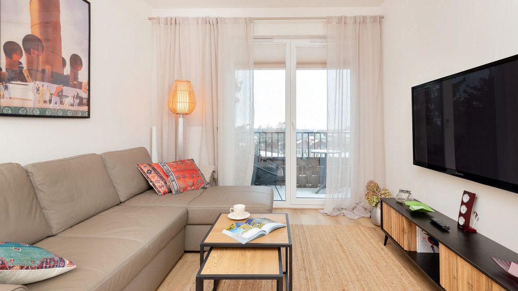 Wyjątkowy apartament o powierzchni 37 m2 z przyjemnością ugości 4 osoby. Został zaprojektowany w duchu stylu rustykalnego, wypełniony jasnymi barwami, przeplatanymi drewnianymi i bambusowymi elementami. Będzie doskonałym wyborem na wypoczynek z całą rodziną, nad pięknym polskim morzem. Apartament składa się z salonu z aneksem kuchennym, sypialni, łazienki, a także umeblowanego balkonu. W salonie znajduje się podwójna rozkładana sofa, telewizor oraz stół z krzesłami, dzięki czemu nasi Goście będą mogli mile spędzać czas podczas wspólnych posiłków. Aneks kuchenny został w pełni wyposażony we wszystkie niezbędne przedmioty, co ułatwi przygotowywanie posiłków. W komfortowej łazience z prysznicem zapewniamy bezpłatny zestaw kosmetyków oraz ręczniki dla Gości. Balkon posiada meble ogrodowe, co pozwoli na relaks na świeżym powietrzu. Zapewniony został również dostęp do Internetu, w postaci sieci WIFI, a także miejsce parkingowe w hali garażowej, wliczone w cenę rezerwacji.