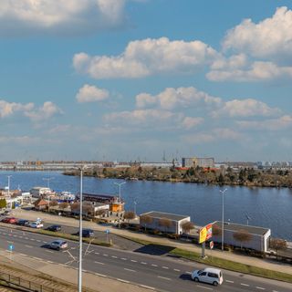 Ten gustownie urządzony apartament ma do zaoferowania gościom dużą, efektywnie zagospodarowaną powierzchnię, dzięki czemu jest to wspaniała lokalizacja dla osób pracujących zdalnie, rodziców organizujących wyjazd z dziećmi, czy też par i przyjaciół. Lokal jest przeznaczony dla czterech osób i znajduje się na pierwszym piętrze budynku, na które można wejść schodami. Dostępna jest tutaj jedna sypialnia, w której stoi duże biurko umożliwiające wygodne wykonywanie zadań służbowych, komfortowe łóżko dwuosobowe oraz sofa, stojący klimatyzator i pojemna szafa. W salonie odwiedzający mogą podziwiać z okna piękny widok na rzekę i miejski krajobraz. W pomieszczeniu umieszczono rozkładany narożnik, jadalniany stół z krzesłami, a także stolik, przy którym można napić się porannej kawy. W oddzielnej kuchni do dyspozycji gości jest piekarnik, kuchenka mikrofalowa, pralka i lodówka z zamrażarką. Można tu wygodnie przygotowywać przekąski i posiłki. W apartamencie znajduje się łazienka z bezprogowym prysznicem oraz dodatkowa toaleta. W jasnym wystroju pojawiają się ciemne akcenty w odcieniach niebieskiego i szarości, dzięki czemu aranżacja jest urozmaicona i nowoczesna.
