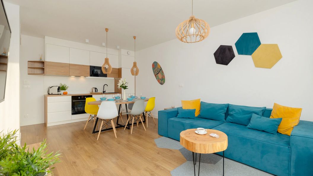 Ten klimatyzowany apartament o powierzchni 46 m² oferuje wysoki standard komfortu i wygody dla 6 osób. To idealne miejsce dla dużej rodziny lub grupy przyjaciół. Zaprojektowany jest w nowoczesnym stylu, a wystrój wnętrza jest stylowy i elegancki. Głównym pomieszczeniem jest salon, który zachęca do wypoczynku i relaksu po dniu pełnym wrażeń. Wyposażony jest w wygodną rozkładaną sofę, stolik kawowy oraz telewizor z płaskim ekranem, co zapewnia idealne miejsce do odpoczynku i oglądania ulubionych programów. Dodatkowo stół jadalniany z krzesłami zapewnia wygodne miejsce do spożywania wspólnych posiłków. Z salonu można wyjść na umeblowany balkon, gdzie można delektować się pięknymi widokami i spokojem, a także odpocząć na przygotowanych krzesłach. W apartamencie znajdują się dwie sypialnie. Jedna sypialnia z wygodnym łóżkiem małżeńskim. Natomiast druga sypialnia otwarta na salon z dwoma pojedynczymi łóżkami. Aneks kuchenny wyposażony jest we wszystkie potrzebne urządzenia do samodzielnego gotowania, takie jak płyta indukcyjna, piekarnik i zmywarka. Goście mają dostęp do bezpłatnej sieci Wi-Fi oraz wszystkich niezbędnych urządzeń łazienkowych, takich jak pralka i suszarka do włosów. Ten apartament to doskonały wybór dla osób ceniących sobie komfort, funkcjonalność i estetykę. Dla wygody każdego gościa zapewniono bezpłatny zestaw kosmetyków, ręczniki oraz pościel. Zapraszamy również gości podróżujących ze zwierzętami, ponieważ jest to apartament przyjazny pupilom. Dodatkowo w obiekcie BALTIN BLU dostępna jest oferta SPA.