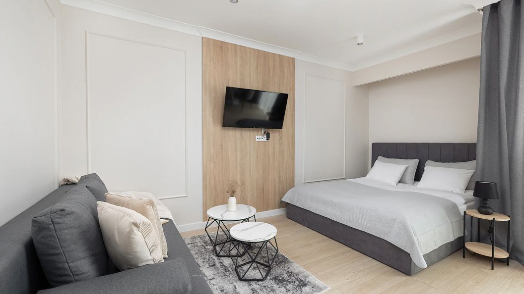 To wyjątkowe studio o powierzchni 26,9 m² komfortowo ugości 4 osoby. Jasne wnętrza wprowadzają elegancką i przyjemną atmosferę, która pozytywnie wpływa na swobodny i komfortowy pobyt. Dobrze dobrane dodatki czynią wnętrze wyjątkowym i spójnym, nadając mu tym samym niepowtarzalnego charakteru. Rozkład pomieszczeń obejmuje salon z aneksem kuchennym, ogródek oraz łazienkę z prysznicem. Salon zachwyca komfortem, gdzie wygodna sofa z funkcją spania dla dwóch osób zaprasza do relaksu oraz odpoczynku. Duże okna wychodzące na ogrodzony ogród przepuszczają mnóstwo naturalnego światła, podkreślając jasną kolorystykę wnętrza. Dodatkowo ogród wyposażony w stolik z krzesłami to idealne miejsce do rozkoszowania się poranną kawą na świeżym powietrzu. Wydzielona przestrzeń z podwójnym, komfortowym łóżkiem, zapewnia wygodne miejsce do odpoczynku. Stół jadalniany z okrągłym blatem to spójne połączenie aneksu kuchennego z salonem, które tworzy przestrzeń przeznaczoną do spożywania posiłków i spędzania czasu z najbliższymi. Funkcjonalnie urządzona kuchnia, wyposażona w wysokiej jakości sprzęty, stanowi idealne miejsce do przygotowywania domowych posiłków. Dla rodzin z dziećmi zapewnione jest bezpłatnie krzesełko do karmienia. Wieczorną rozrywkę zapewniają multimedia, takie jak telewizor z płaskim ekranem, a także bezpłatny dostęp do sieci Wi-Fi. Dodatkowym atutem studia jest pralka, która zwiększy komfort podczas dłuższych pobytów. Na dobry początek zapewniamy gościom bezpłatny zestaw kosmetyków, ręczniki oraz pościel. Miejsce przyjazne jest zwierzętom.