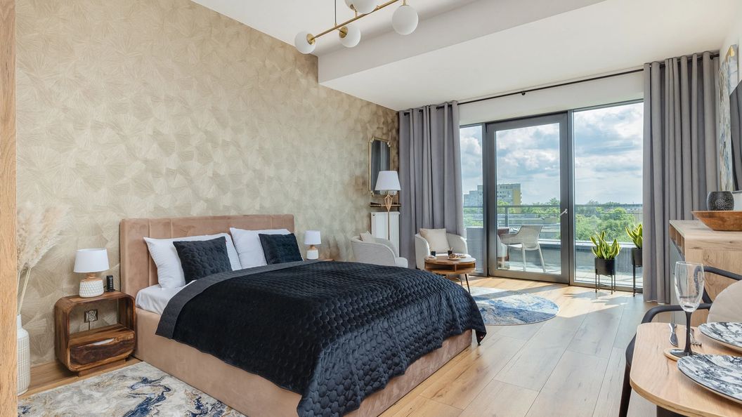 To wyjątkowe Studio o powierzchni 36 m² znajduje się na 6. piętrze. Oferuje komfortowe zakwaterowanie dla 2 osób. Jest to doskonały wybór na romantyczny pobyt we dwoje lub dla osób podróżujących służbowo. Nowoczesne, a zarazem przytulne wnętrza wprowadzają w spokojny nastrój, a w pełni funkcjonalne wyposażenie gwarantuje wygodę pobytu na wysokim poziomie. Gustownie dobrane dodatki nadają wnętrzom elegancji i niepowtarzalnego charakteru. Rozkład pomieszczeń obejmuje salon z aneksem kuchennym oraz łazienkę z prysznicem. Część dzienna to przytulna przestrzeń do relaksu i spędzania czasu z najbliższymi. Duże podwójne, wygodne łóżko gwarantuje spokojny sen i zapewnia regenerację sił po dniu pełnym wrażeń. Miękkie fotele zapraszają do odpoczynku, a duże okna wpuszczają mnóstwo naturalnego światła. Dodatkowego uroku nadaje balkon z widokiem na miasto, gdzie poranna kawa będzie smakować jeszcze bardziej. Stół jadalniany to miejsce do spożywania wspólnych posiłków, jak również spójne połączenie salonu z aneksem kuchennym. Wystrój aneksu kuchennego harmonijnie komponuje się z pozostałą częścią pomieszczenia. Dzięki wysokiej jakości sprzętom, takim jak płyta indukcyjna, zmywarka, toster czy lodówka daje możliwość przyrządzania domowych posiłków. Wieczorną rozrywkę zapewniają multimedia, takie jak telewizor z płaskim ekranem z Netflixem i telewizją naziemną oraz bezpłatny dostęp do WiFi. Dla wygody naszych Gości, zapewniamy bezpłatny zestaw kosmetyków, ręczniki oraz świeżą pościel. Nasze studio wyróżnia się nie tylko nowoczesnym i ciepłym wystrojem, ale również starannym wykończeniem, zapewniającym przyjemną atmosferę i niezapomniany pobyt.