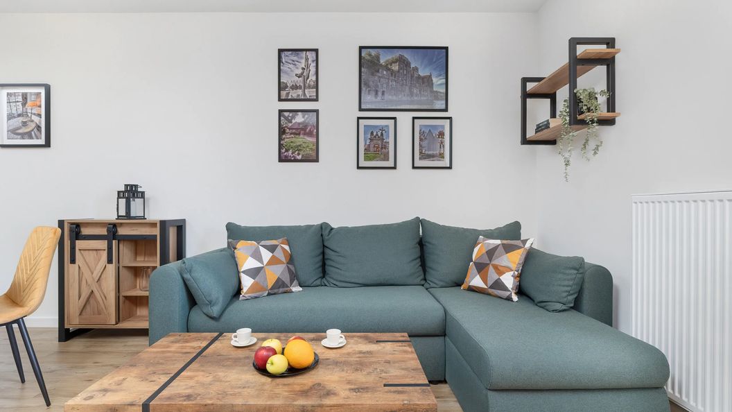 Nowoczesny apartament znajduje się na trzecim piętrze i oferuje miejsca noclegowe dla czterech osób. Takie rozmieszczenie sprawia, że miejsce idealnie nada się dla rodziny lub podróżującej wspólnie grupy. Pomieszczenia utrzymane są w loftowym stylu, a dodatki w żywych kolorach rozpromieniają wnętrze. Dwa miejsca noclegowe znajdują się w osobnej sypialni na podwójnym łóżku małżeńskim, a kolejne dwa w salonie na podwójnej rozkładanej sofie. Aneks kuchenny jest w pełni wyposażony i przystosowany do przygotowywania pysznych posiłków. Znajduje się w nim między innymi płyta indukcyjna, piekarnik oraz kuchenka mikrofalowa. Zmywarka stanowi dodatkowy atut. Warto również spróbować kawy z dostępnego ekspresu kapsułkowego – idealnie sprawdzi się na rozpoczęcie kolejnego dnia pełnego wrażeń. Łazienka wyposażona jest w wygodną wannę, ręczniki oraz specjalny zestaw bezpłatnych kosmetyków. Pralka z pewnością przyda się w trakcie dłuższych pobytów lub rodzicom z małymi dziećmi. Apartament posiada dostęp do wszelkich udogodnień multimedialnych, między innymi do szybkiego połączenia WiFi oraz telewizora z płaskim ekranem i funkcją SmartTV+.