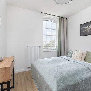 Loftowy budynek przy ulicy Kwiatkowskiego w Szczecinie znajduje się w niezwykle spokojnej i zielonej okolicy. Miejsce idealnie sprawdzi się dla osób poszukujących odpoczynku bez jednoczesnej potrzeby rezygnowania z wygód oferowanych przez duże miasto. Pobliski Park Cukrowa to punkt obowiązkowy dla każdego miłośnika pięknej przyrody i spacerów na świeżym powietrzu. Dotrzeć do niego można w zaledwie pięć minut, a biegnące przez jego teren liczne ścieżki ułatwiają rekreację i aktywny wypoczynek. W bliskim sąsiedztwie budynku znajduje się wiele sklepów spożywczych, punktów handlowo-usługowych oraz duży park handlowy Rondo Hakena. Samochodem do ścisłego centrum Szczecina można dojechać już w siedemnaście minut. Brama Portowa oraz położone niedaleko Bulwary Szczecińskie to niezwykle reprezentatywne miejsca – zdecydowanie warto je odwiedzić w takcie pobytu w mieście. Okolica budynku jest bardzo dobrze skomunikowana z resztą Szczecina. Stacja kolejowa Szczecin Gumieńce znajduje się zaledwie pięć minut od apartamentu, a do najbliższego przystanku autobusowego Cukrowa 21 spacer zajmie zaledwie trzy minuty.