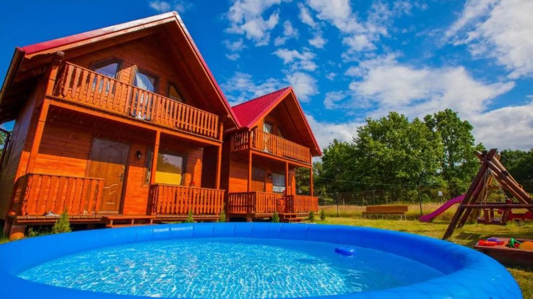lipiec 2014Bardzo fajnie domki położone pod lasem, cisz, spokój, a jednocześnie blisko do centrum Ostrowa ok 300 m skrótem, na plażę spacerkiem ok 15 minut. Polecam dla rodzin posesja ogrodzona, basen, trampolina dzieci się nie nudzą.
