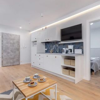 Do dyspozycji gości oddano w pełni wyposażony aneks kuchenny, który obejmuje płytę kuchenną, zmywarkę, lodówkę, kuchenkę mikrofalową oraz ekspres do kawy i toster. W łazience znajduje się pralka i suszarka do włosów. Wyposażenie uzupełniają ręczniki, żelazko, dostęp do internetu Wi-Fi oraz telewizja kablowa z funkcją Smart TV.