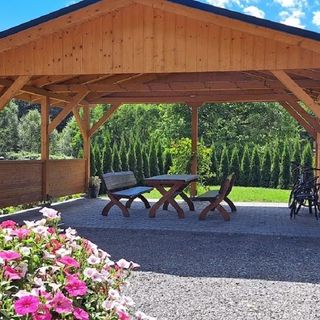 Nasz dom oferuje do dyspozycji gości całą dolną kondygnację budynku (parter). Znajdują się tam: korytarz, przedpokój, 2 pokoje, dobrze wyposażona kuchnia i łazienka z prysznicem. W jednym z pokoi znajdują się 2 rozkładane sofy, a w drugim 2 łóżka pojedyncze i 1 rozkładana sofa. Dom ogrzewany jest gazem, temperatura ustawiona jest automatycznie. Na terenie posesji znajduje się wiata, przy której można grillować i zamykane miejsce parkingowe.