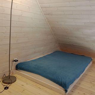- antresola-wejście po drabinie, materac dwuosobowy, regał, stolik nocny