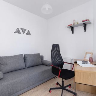 Podwójna rozkładana sofa, biurko z krzesłem, szafa