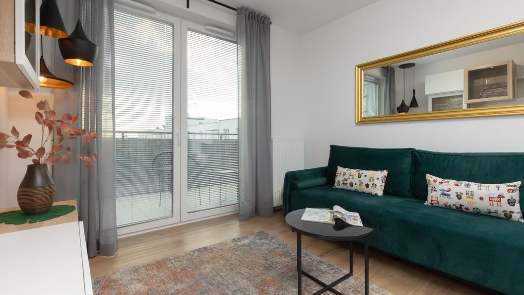 Nowoczesny apartament oferuje eleganckie miejsce noclegowe dla 5 osób. To unikalnie i stylowo urządzone mieszkanie o powierzchni 51 metrów to perfekcyjny wybór na wyjazd do Stolicy z rodziną lub przyjaciółmi. Powierzchnia mieszkalna składa się z przestronnego salonu z aneksem kuchennym, dwóch sypialni (jednej z łóżkiem małżeńskim i drugiej z dwoma pojedynczymi łóżkami) oraz łazienki z prysznicem. Dzięki wygodnemu biurku z krzesłem goście mają możliwość komfortowej pracy zdalnej i zadbania o służbowe obowiązki ze spokojną głową. Gustowne umeblowanie oraz modne dodatki wpływają na doskonały klimat apartamentu. Do mieszkania przynależy balkon z meblami ogrodowymi, który jest doskonałym miejscem na filiżankę porannej kawy na dzień dobry. Wyposażenie multimedialne obejmuje dwa telewizory z technologią SmartTv oraz dostęp do szybkiego, bezpłatnego połączenia WiFi. Apartament zaopatrzony jest we wszystkie podstawy niezbędne do wypoczynku. Dla ułatwienia rozpoczęcia każdego pobytu zapewniony jest bezpłatny zestaw kosmetyków (mydło, szampon i żel pod prysznic), ręczniki oraz pościel. Dodatkowo, do mieszkania przynależą dwa prywatne miejsca postojowe.