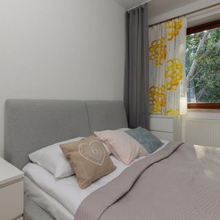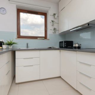 Niezwykle funkcjonalny i jasny apartament może ugościć do 6 osób. To najlepszy wybór na rodzinny wyjazd do Stolicy! Powierzchnia mieszkalna składa się z dwóch sypialni z wygodnymi łóżkami, przestronnego salonu z dwuosobową rozkładaną sofą, aneksu kuchennego oraz łazienki z prysznicem oraz WC. Z części dziennej wyjść można na balkon wyposażony w meble ogrodowe, z widokiem na okolicę. Wnętrze wykończone jest w przytulnym stylu, zapewniającym maksimum komfortu przy jednoczesnym zachowaniu prostoty i nowoczesności przestrzeni. Na domową i przyjazną atmosferę mieszkania wpływ ma również duża ilość światła dziennego, która wypełnia pomieszczenia. Apartament posiada aż dwa biurka w jednej z sypialni, dzięki czemu Goście pracujący zdalnie nie muszą się martwić o realizację obowiązków służbowych. Miejsce zaopatrzone jest we wszystkie podstawy niezbędne do wypoczynku. Multimedia obejmują płaski telewizor SmartTV z dostępem do Internetu oraz kanałami kablowymi, jak i bezpłatne łącze Wi-Fi. Aby zwiększyć samowystarczalność apartamentu, w pełni wyposażony aneks kuchenny posiada niezbędne urządzenia (czajnik, piekarnik czy płyta indukcyjna), natomiast w łazience goście znajdą pralkę i suszarkę do włosów. Dla ułatwienia rozpoczęcia każdego pobytu zapewniony jest bezpłatny zestaw kosmetyków (mydło, szampon i żel pod prysznic), ręczniki oraz pościel. Goście podróżujący samochodem mogą zaparkować na prywatnym miejscu postojowym w garażu podziemnym.