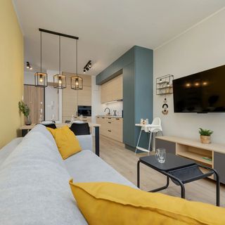 Ekskluzywny apartament o powierzchni 40 m², pełny uroku i starannie zaaranżowany, oferuje miejsce dla 4 osób, idealny na rodzinny wypad lub spotkanie z przyjaciółmi. Rozkład pomieszczeń obejmuje salon z aneksem kuchennym, sypialnię i łazienkę z prysznicem. W części dziennej znajduje się wygodna podwójna rozkładana sofa co czyni pokój znakomitym miejscem do wypoczynku. Do dyspozycji gości jest także balkon z meblami ogrodowymi. Poza walorami estetycznymi apartamentu, komfort każdego pobytu jest zapewniony, dzięki szerokiej gamie udogodnień. Multimedia obejmują telewizor z płaskim ekranem telewizor oraz bezpłatny bezprzewodowy dostęp do Internetu, a także klimatyzację, która zapewni komfortowy pobyt zwłaszcza w upalne dni. Kompleksowe wyposażenie apartamentów w niezbędne akcesoria i sprzęty kuchenne, jak i łazienkowe gwarantuje wygodny i bezproblemowy pobyt w Gdańsku. Dla ułatwienia rozpoczęcia każdej wizyty zapewniono bezpłatny zestaw kosmetyków (mydło, szampon i żel pod prysznic), ręczniki oraz pościel. Miejsce to zostało wyposażone we wszystko, co niezbędne do zapewnienia spokojnego wypoczynku i relaksu. Wystrój apartamentów emanuje nowoczesnością i przytulnością, dzięki przemyślanej, jasnej kolorystyce, komfortowemu umeblowaniu oraz starannej trosce o detale.