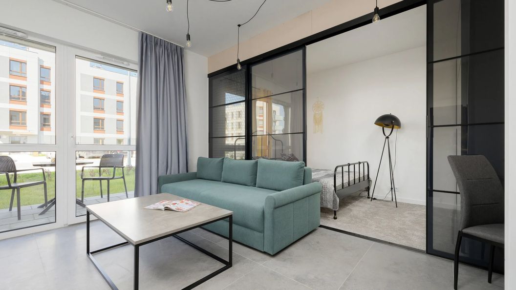 Ten nowoczesny apartament o powierzchni 41 m² komfortowo ugości 4 osoby. Jest to doskonała propozycja na weekendowy pobyt w Warszawie lub dla osób podróżujących służbowo. Wnętrza zostały zaprojektowane z wysoką starannością, co pozytywnie wpływa na swobodny i przyjemny pobyt. Gustownie dobrane dodatki czynią wnętrze nowoczesnym, a zarazem przytulnym, nadając mu tym samym niepowtarzalnego charakteru. Rozkład pomieszczeń obejmuje salon z aneksem kuchennym, sypialnię, ogród z tarasem oraz łazienkę z prysznicem. Salon zachwyca komfortem, gdzie wygodna, miękka sofa z funkcją spania dla dwóch osób zaprasza do relaksu oraz odpoczynku. Duże okna wychodzące na ogród przepuszczają mnóstwo naturalnego światła, a subtelnie dobrana kolorystyka dodaje wnętrzu ciepła i uroku. Dodatkowo taras wyposażony w meble ogrodowe to idealne miejsce do rozkoszowania się poranną kawą na świeżym powietrzu. Aneks kuchenny to doskonała przestrzeń do przyrządzania domowych posiłków. Wszystkie sprzęty AGD są najwyższej jakości, zapewniając nie tylko elegancję, ale także funkcjonalność. Przytulna sypialnia z wygodnym podwójnym łóżkiem zapewnia odpoczynek i regenerację sił po dniu pełnym wyzwań. Stylowa łazienka została wyposażona w pralkę oraz suszarkę do włosów, co jest nieocenione podczas dłuższego pobytu. Wieczorną rozrywkę zapewniają multimedia, takie jak telewizor z płaskim ekranem z funkcją Smart TV i telewizją kablową, a także bezpłatny dostęp do sieci Wi-Fi. Na dobry początek zapewniamy gościom bezpłatny zestaw kosmetyków, ręczniki oraz pościel. Niewątpliwą zaletą dla zmotoryzowanych jest zapewnione miejsce postojowe znajdujące się obok budynku.