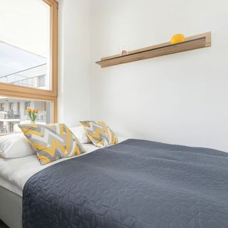 Jasny apartament o powierzchni 32 m² może ugościć 4 osoby. Będzie doskonałym miejscem noclegowym dla rodzin z dziećmi lub grup przyjaciół pragnących zwiedzić stolicę i wszystkie jej najważniejsze atrakcje. Wystrój apartamentu został zaprojektowany w pogodnych, jasnych kolorach co sprawi, że nasi Goście poczują się tu znakomicie. Stylowe meble i dodatki sprawią, że pobyt w tym miejscu będzie naprawdę przyjemny i udany. Apartament składa się z salonu, sypialni, aneksu kuchennego, łazienki oraz balkonu. W salonie znajduje się wygodna rozkładana sofa, nowoczesny telewizor, komoda oraz stolik kawowy. Został zapewniony również dostęp do Internetu w postaci sieci WIFI. Sypialnia posiada komfortowe łóżko małżeńskie oraz świeżą pościel dla naszych Gości. Aneks kuchenny został wyposażony we wszystkie przybory, niezbędne do przygotowywania posiłków oraz stół z krzesłami, przy którym można wygodnie je spożywać. W łazience dostępna jest kabina prysznicowa, suszarka do włosów, pralka oraz ręczniki dla Gości. Na umeblowanym balkonie można rozkoszować się filiżanką ulubionej kawy i miło rozpocząć nowy dzień. Do apartamentu przynależy również miejsce parkingowe w garażu podziemnym.