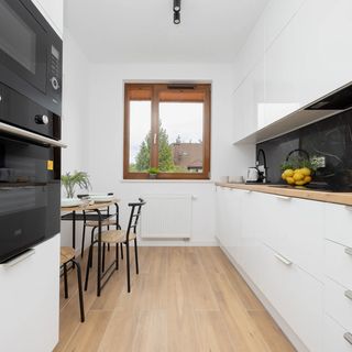 Kuchnia jest w pełni wyposażona i nowoczesna, oferując wszystko, co potrzebne do przygotowywania posiłków. Znajduje się tu lodówka, piekarnik, płyta indukcyjna, zmywarka, czajnik elektryczny oraz wszelkie niezbędne naczynia i przybory kuchenne. Mieści się tu również część jadalniana z usytuowanym stołem i trzema krzesłami, co zapewnia komfortowe warunki do wspólnego ucztowania. Druga sypialnia jest przytulnym pomieszczeniem z dużym łóżkiem małżeńskim oraz pojemną szafą, która pomieści wszystkie niezbędne rzeczy. Łazienka jest w pełni wyposażona, zawiera prysznic oraz pralkę, co zapewnia wygodę podczas dłuższych pobytów. Dodatkowym atutem apartamentu jest prywatne miejsce parkingowe w hali garażowej. Ten jasny i nowoczesny apartament to idealne miejsce dla rodzin, par oraz grupy znajomych, którzy cenią sobie komfort, funkcjonalność i nowoczesny design w pięknym otoczeniu.