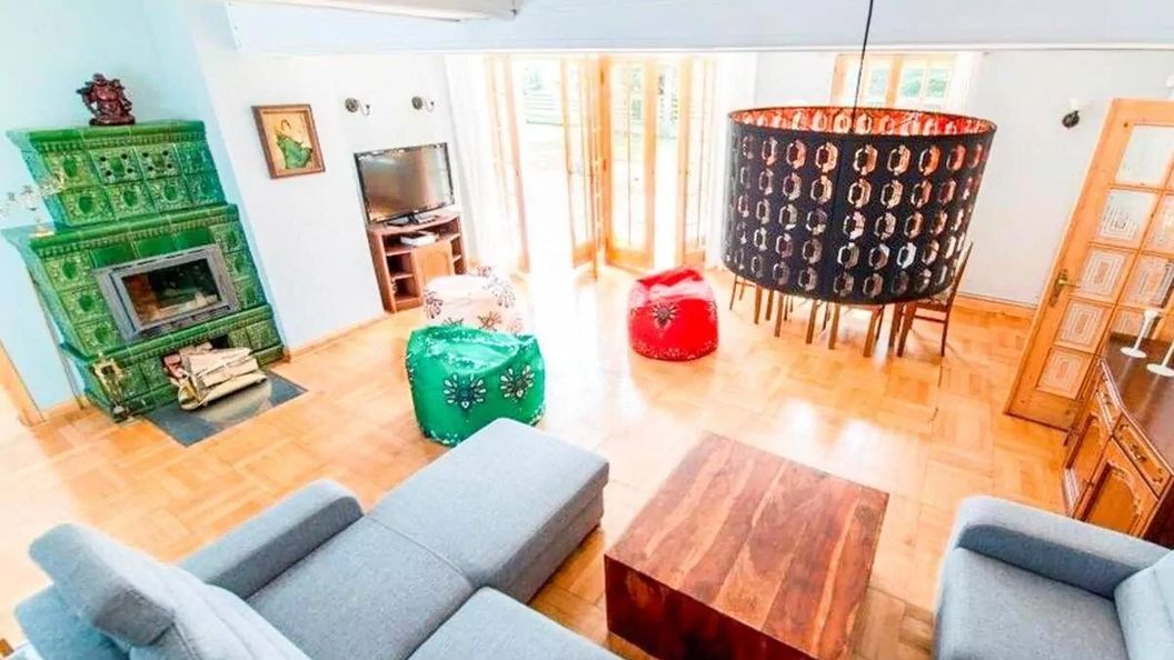Na parterze tuż obok przestronnego holu wejściowego znajduje się duża w pełni wyposażona kuchnia, która umożliwia przygotowanie posiłków. W przestronnym salonie znajduje się duży stół, płaski telewizor oraz piękny, kaflowy, zamykany kominek, który w chłodne wieczory jeszcze bardziej umila atmosferę. Wewnątrz znajduje się części przeznaczonej na bawialnię dla maluchów. Dodatkowo w obiekcie są prywatne łazienki oraz przestronne sypialnie.