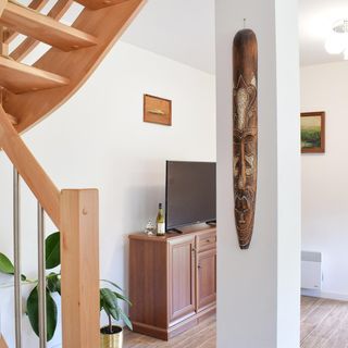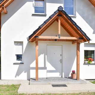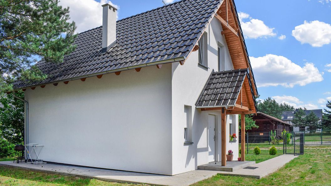 - Dom wykonany z drewna i cegły